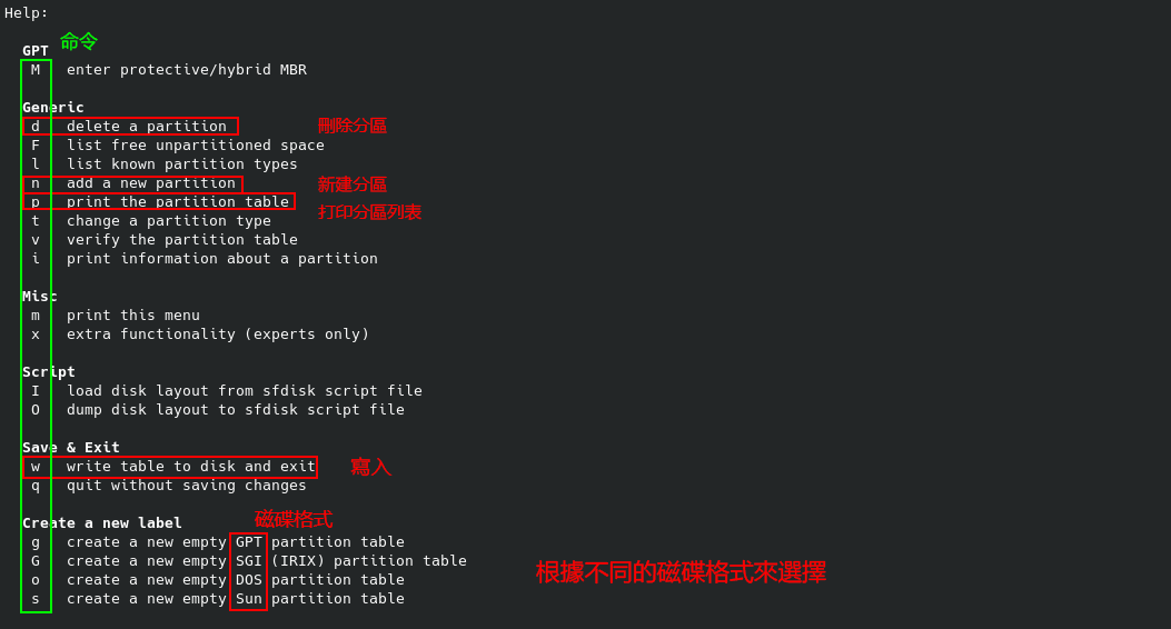 fdisk /dev/sda #输入此命令后打开以下界面