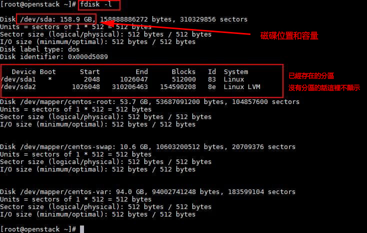 使用fdisk -l 命令来查看磁盘(硬盘)信息