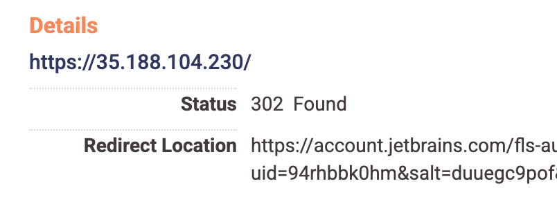 找这种状态码是302 Found的,将其地址复制到JetBrains软件里的server license里认证就行。
